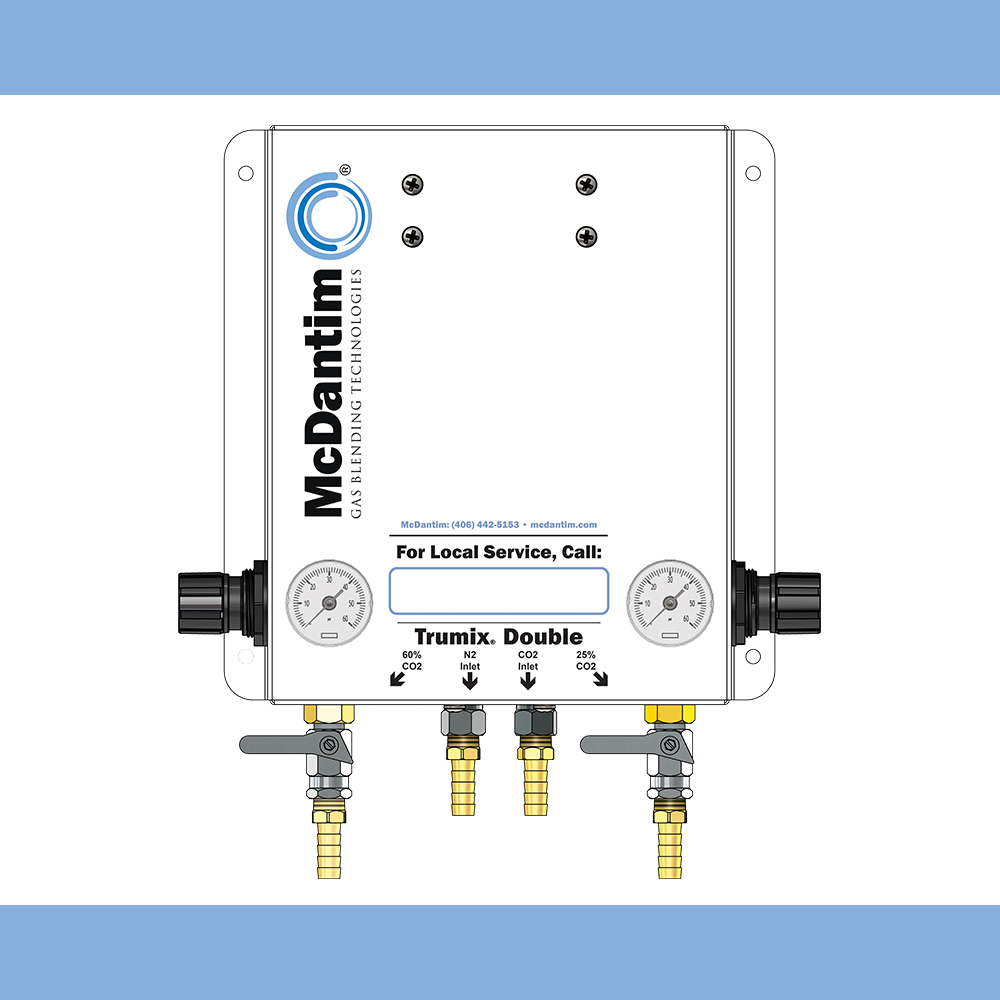 A - Check that an adequate supply of both Carbon Dioxide (CO2) and Nitrogen (N2) gases. The Trumix® Gas Blender is designed to shut down if either the CO2 or the nitrogen run out. Running just CO2 or just nitrogen through the blender will ruin the beer, though this is not possible under normal operating conditions.